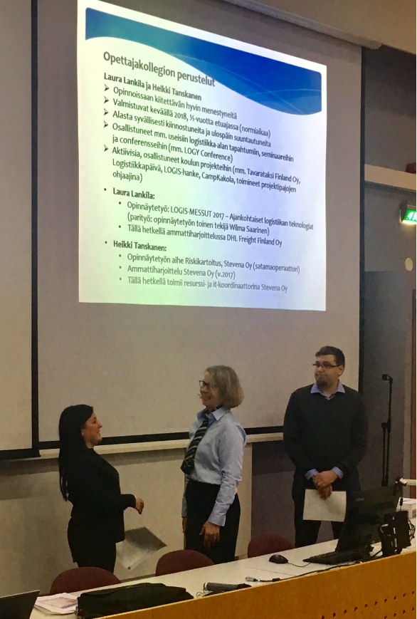 Yhdistys jakoi stipendit Laura Lankilalle ja Heikki Tanskaselle aktiivisuudesta erilaisten koulun projektien ja hyvin edenneiden opintojen vuoksi.