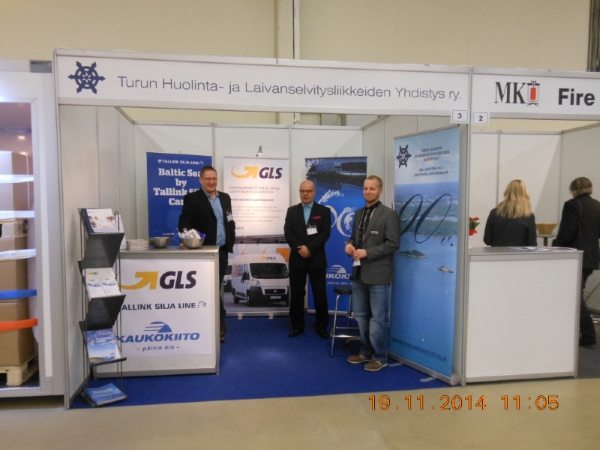 Yhteisosastollamme esittäytyivät Tallink Silja Oy, GLS Finland Oy ja Kaukokiito Oy. Kävijöitä kahden päivän aikana oli n. 1500. Vastailimme moninaisiin messukävijöiden kysymyksiin, pari päivää kuluivat nopeasti. Ohessa kuva standistämme.